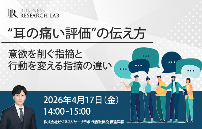 株式会社ビジネスリサーチラボは、2026年4月17日にオンラインセミナー「“耳の痛い評価”の伝え方:意欲を削ぐ指摘と行動を変える指摘の違い」を開催します。